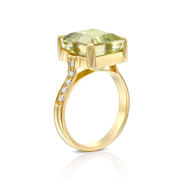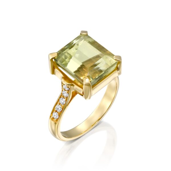 טבעת זהב משובצת אבן בריל (5 קראט, 10*12מ"מ) ו - 10 יהלומים לבנים 1.5 מ"מ (0.2 קראט), ניקיון VS
